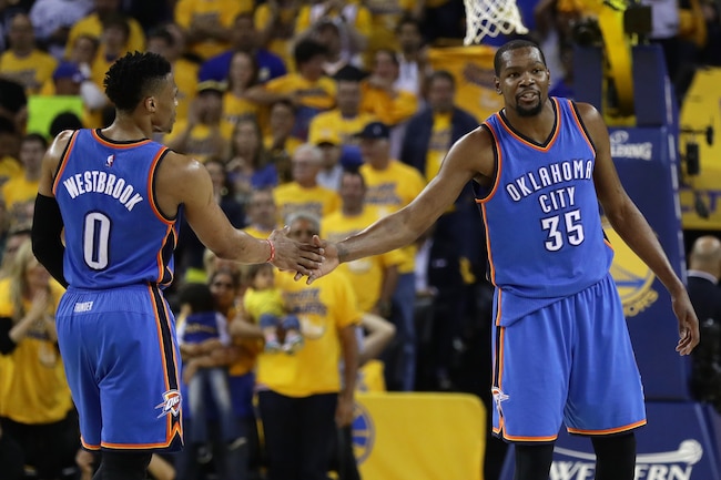 Kevin Durant zdobył 27 punktów, 3 asysty, 7 zbiórek. Russel Westbrook uzyskał 19 punktów, 13 asyst, 7 zbiórek, 2 przechwyty, 3 straty. Serge Ibaka 16 punktów, 1 asysta, 4 zbiórki. Steven Adams 9 punktów, 9 zbiórek, Andre Roberson 4 punkty, 12 zbiórek. Trener Billy Donovan tym razem mógł skorzystać tylko z trzech zawodników z ławki, pierwszy z nich Enes Kanter zdobył 8 punktów i 4 zbiórki, Dion Waiters 5 punktów, 2 asysty, 4 zbiórki, a trzeci z rezerwowych Randy Foye pojawił się na kilka sekund na boisku.
